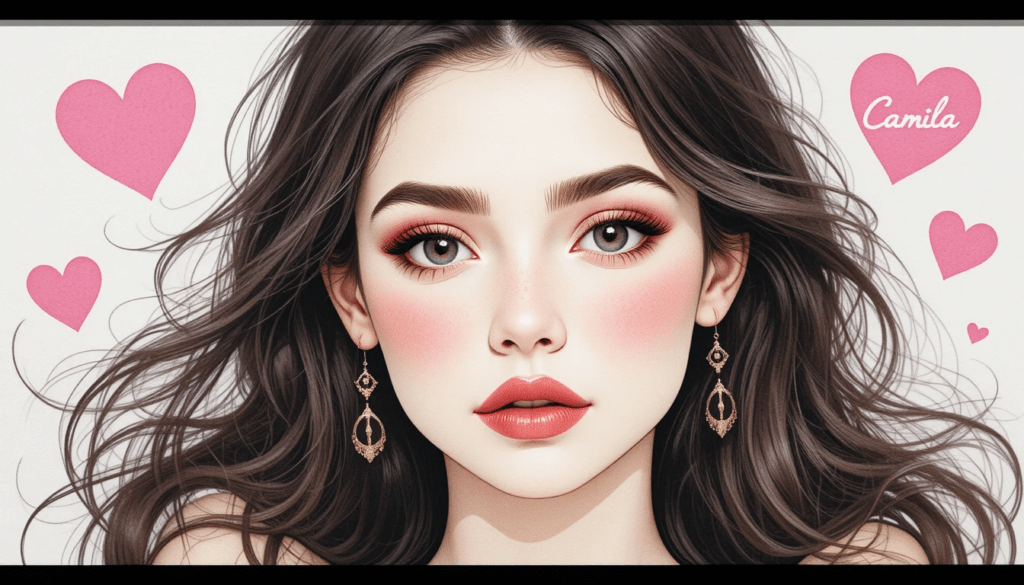 Ilustración tipo acuarela con el nombre “Camila”, corazones rosados flotando, estilo artístico, suave y romántico.